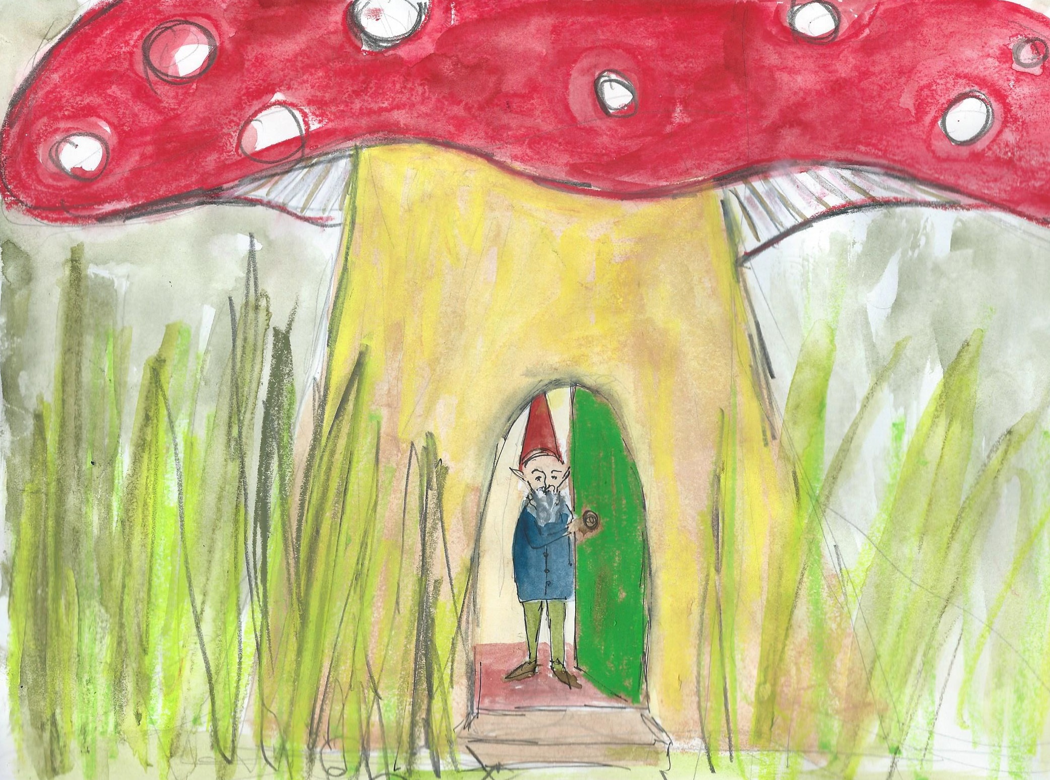 They scurried around, studying every toadstool they came to. At last they found it. Princess Pearl knelt down and knocked on a tiny green door. It flew open.